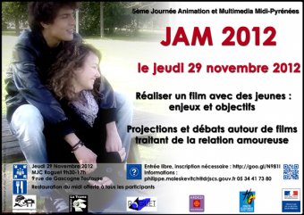 La cinquième Journée Animation et Multimédia (JAM) en Midi-Pyrénées aura lieu le jeudi 29 novembre 2012, de 9h à 17h à la MJC Roguet (Toulouse).